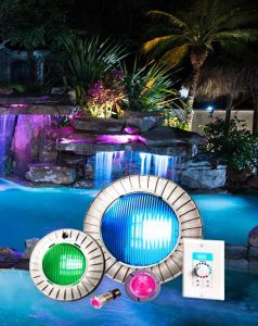 Our LED Pool, Spa and Backyard Lights are designed to illuminate nearly any new or existing swimming pool or spa environment with vibrant color. Choose from 10 solid colors and 7 dynamic, color-changing light shows to compose the perfect theme for any occasion—from romantic evening to backyard bash. With lights available in 4 different sizes and multiple brightness levels, discover how our full selection of lighting products can turn any backyard environment; from the basic to the elaborate into an oasis of color.
